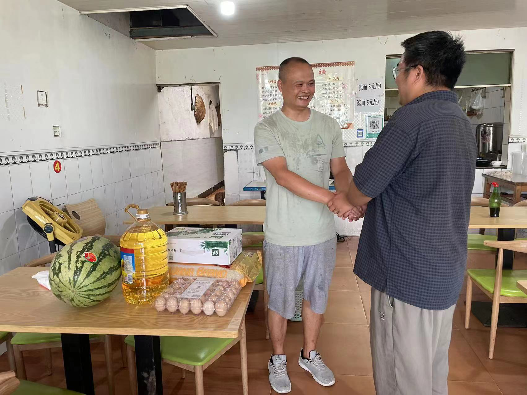 公司相關負責人同退伍老兵親切交談,仔細詢問他們的生活、工作及身體情況,對退伍老兵及老兵家屬的付出和貢獻表示感謝。慰問團一行向他們送上米、油、牛奶等生活用品并致以節日的問候和祝福。